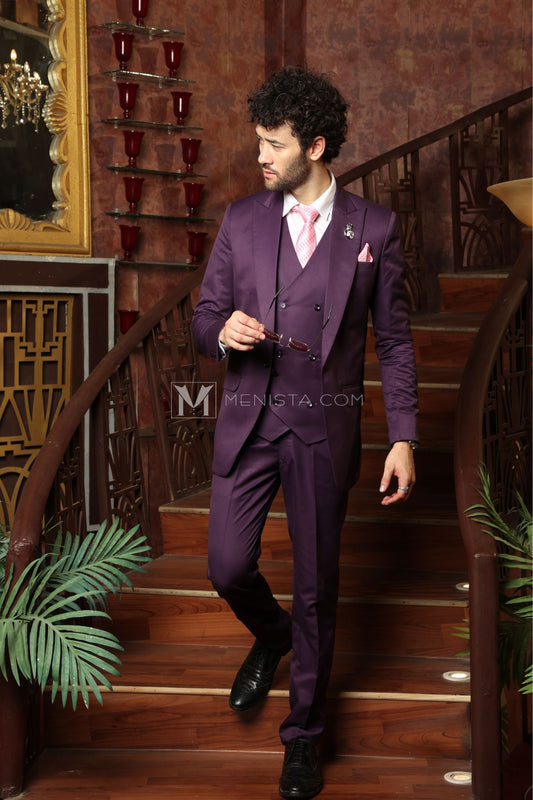 Purple Men’s 3-Piece Suit by Menista - Tailored Fit for Distinctive Style