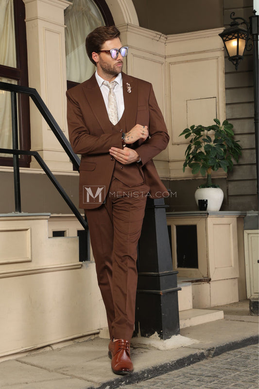 Stylish Brown 3-Piece Suit by Menista – Single-Breasted, Elegant Men's Formal Suit
