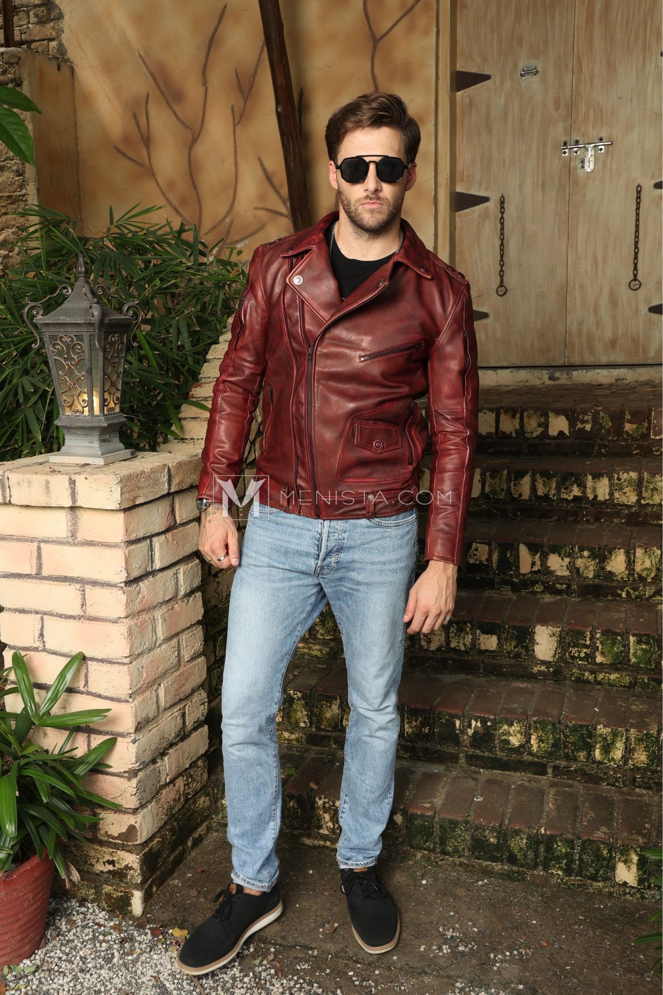 Elevate your wardrobe with Menista's Cherry Red Leather Jacket, designed for men who appreciate both style and comfort. This jacket features a sleek, contemporary cut and is made from premium quality leather, offering durability and a smooth, polished finish. The rich cherry red color adds a bold statement to any outfit, making it perfect for casual or semi-formal occasions. With a tailored fit, this jacket provides a sharp, modern look while ensuring maximum comfort and flexibility. Whether paired with jeans, trousers, or a shirt, the Cherry Red Leather Jacket is an essential addition to any man's fashion collection.