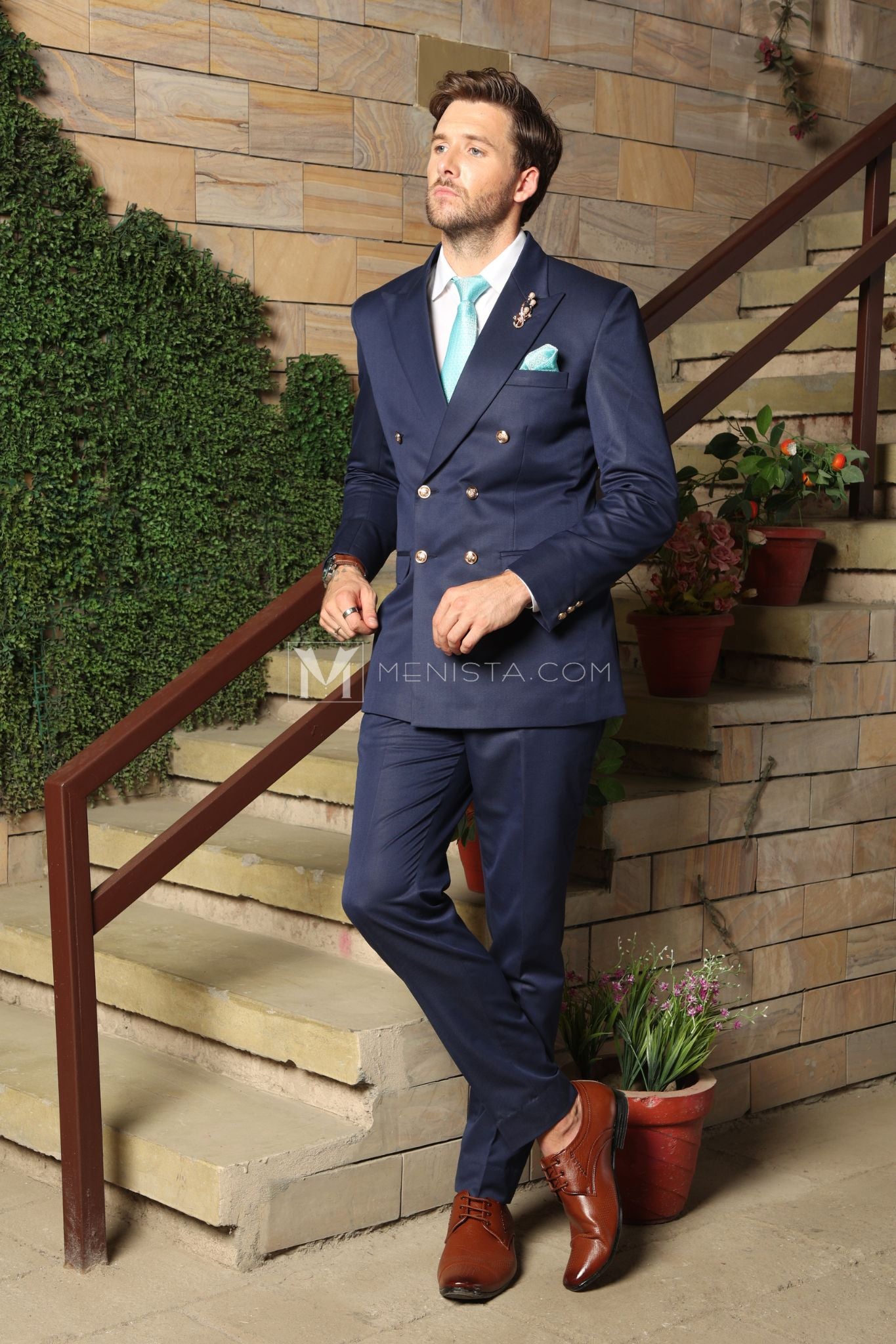 Menista Men's Navy Blue Double-Breasted Suit – Classic Fit Formal & Wedding Wear